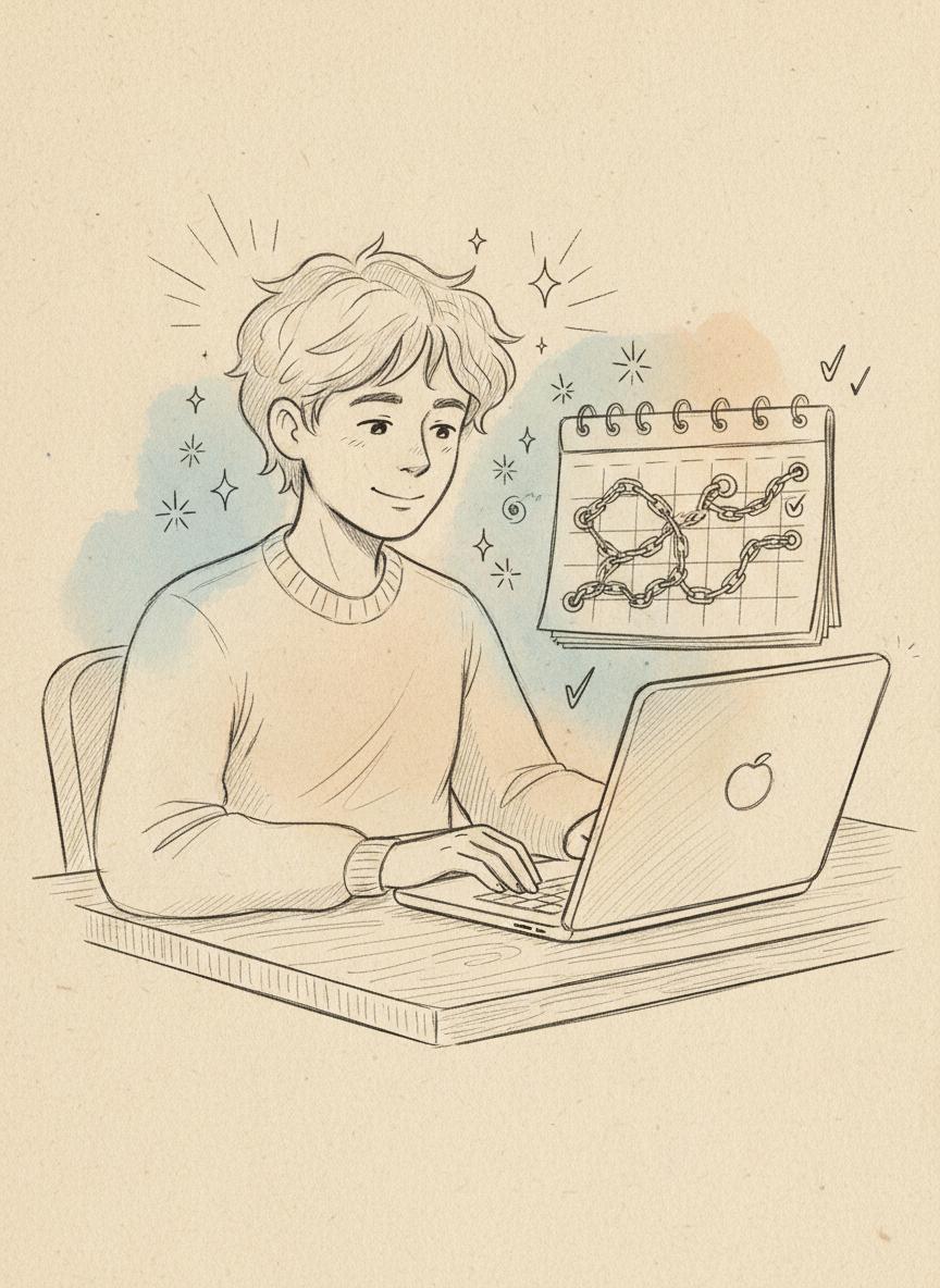 “I was struggling to maintain any routine until I found this app. Now I've completed 127 days of coding practice and morning workouts. The visual chain is incredibly motivating!”